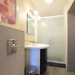 Les chambres comprennent une douche et une baignoire avec une TV, une toilette séparée et un vestiaire.